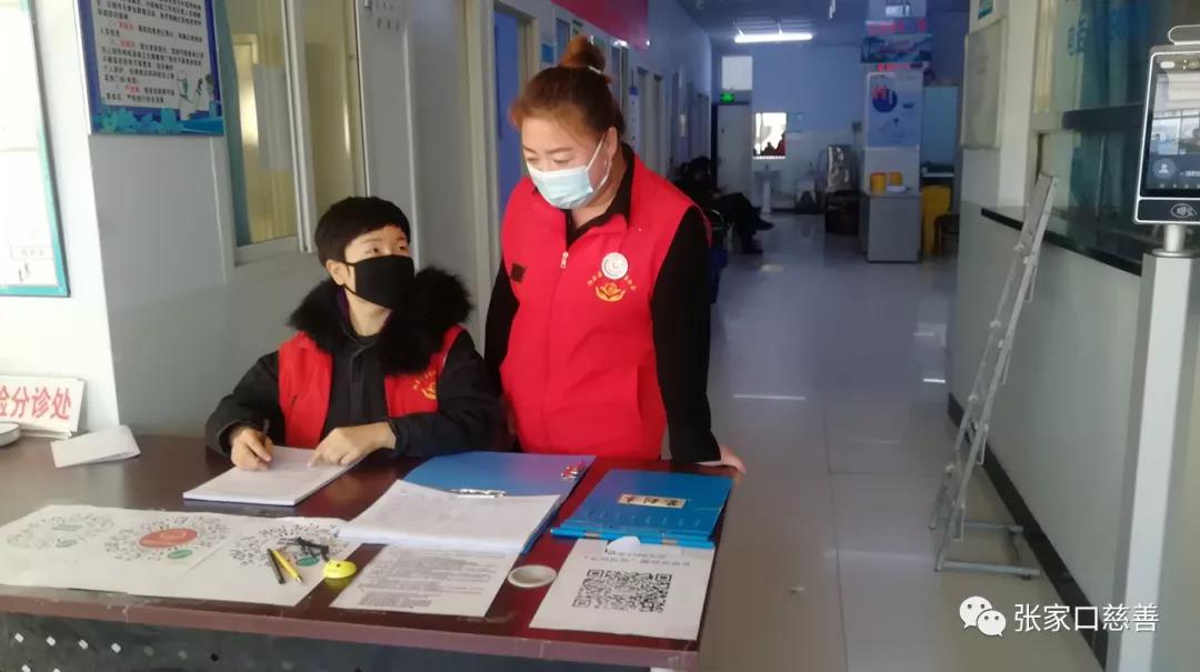会长田广阔带领王素珍,张晓宇,祁英,薛桂芳,马玉珍,曹有,封涛,冯海燕等志愿者来到阳原县弘州医院迅速开展志愿服务,志愿者们分成两组,一组协助医院进行登记、测体温、扫码、排队。
