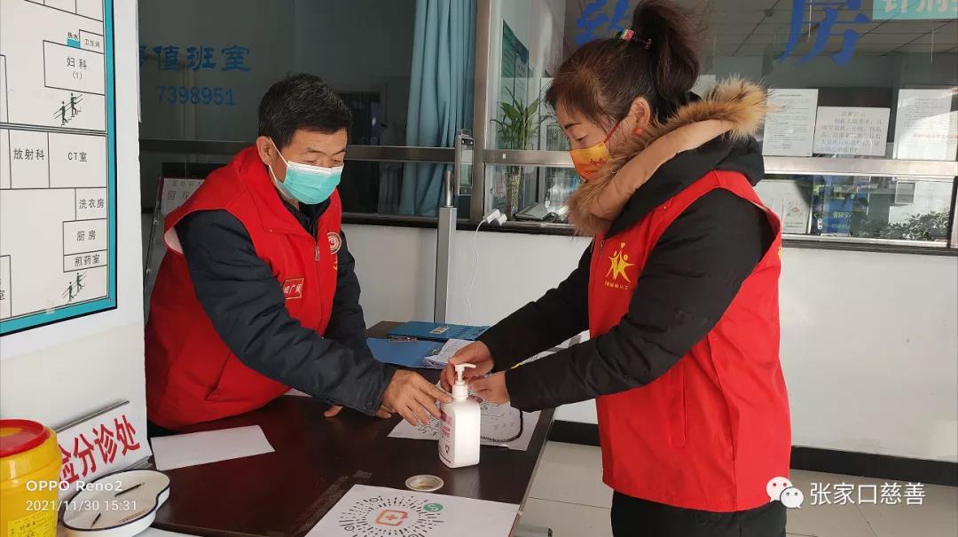 2021年11月30日,阳原爱国拥军联合会响应张家口慈善义工联合会党委“相约冬奥—抗红旗、当先锋”专项行动的号召,协助阳原县弘州医院开展新冠疫苗加强针(第三针)接种工作,防疫情、保冬奥。