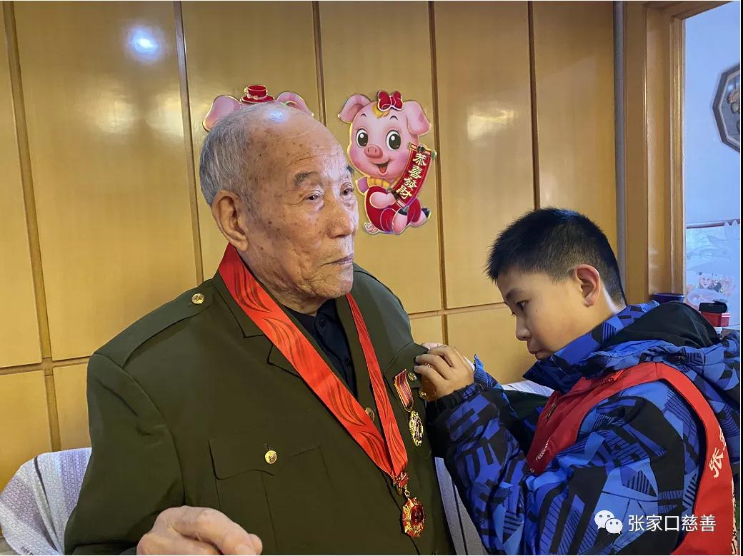 何老身经百战,大家的敬仰之心油然而生。老人家还为志愿者们讲述了战争年代部队行军多在晚上出发,长途行军人人脚上都要磨出脚泡,可以说泡是我们胜利进军的伙伴,至今对脚泡还有一种特殊的情钟。记得那是48年11月下旬我部配合东北战役,奉命攻打栾平县城,县城被攻克残敌顺承德古北口公路向关内逃窜,我部又奉命追歼敌人,后脚跟脚皮被冰层刮掉,当时顾不了这一切继续追击敌人,由于治疗不及时,脚跟感染,肿的不能行走,只好借老乡的毛驴随军行进。当行至热河的七脖子、八脖子大山时,只见山高陡峭,悬崖峭壁,情势危险,因此不能骑驴只能扶杖而行,非常艰难,长途跋涉对每个人来说都是耐力的衡量,毅力的考验。现在回想起来还记忆犹新。