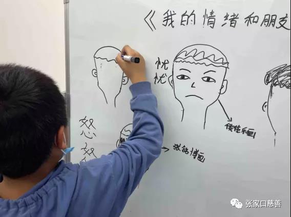 第四个环节:成长苑,通过作画的形式,让同学们在空白的纸上画出不同情绪的表情,加深同学们对不同情绪的印象。