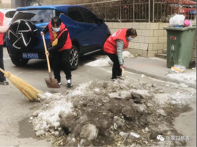 上次11月6日大雪过后整整34天,高楼背后,见不着太阳的背阴处,居民出入的必经之路,积雪堆变成了冰雪堆至今未化,白天边缘上化点水,晚上又结成冰。老人和上学的孩子们经常不慎滑倒摔伤。队长冀生梅看在眼里急在心上,坚硬磁实的大冰堆根本用扫帚铁锨是弄不动的硬骨头。队长不但自己购买了全套扫雪工具,现在又加了一件硬头工具,它叫“铁镐头”,只有用它才能搬动这坚硬的小山头。大家用尽全身力气把冰坨一块块刨起,冰花四溅,弄得大家身上,头上,脸上全是冰渣,非常坚硬,我们就这样轮流着刨的刨,铲的铲,扫的。天气虽然寒冷,但大家浑身是汗,干得热火朝天。一个人做点好事并不难,难的是能带动起一群人日复一日,年复一年一直坚持为人民做有意义的好事、实事,真的很难。我们的团队就是如此团结友爱,齐心协力,并肩战斗。