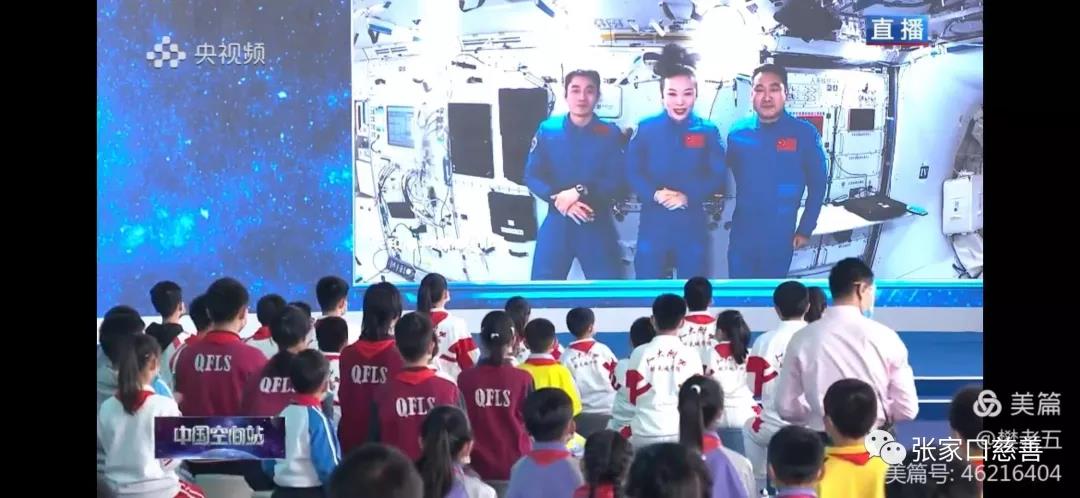 活动现场,首先组织学生观看了“中国空间站首次太空授课项目”直播视频。本次“太空教学”由王亚平、翟志刚和叶光富共同担任,在中国空间站为广大青少年带来了一场精彩的太空科普课。从“我是太空教师王亚平。“天宫课堂”正式拉开帷幕。这是中国空间站首次太空授课活动,在约60分钟的授课中,神舟十三号飞行乘组的三位航天员生动介绍展示了空间站工作生活场景,演示了微重力环境下细胞学实验、人体运动、液体表面张力等神奇现象,并讲解了实验背后的科学原理。授课期间,航天员通过视频通话形式与地面课堂师生进行了实时互动交流。