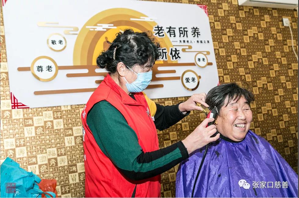 田金芝为老人理发