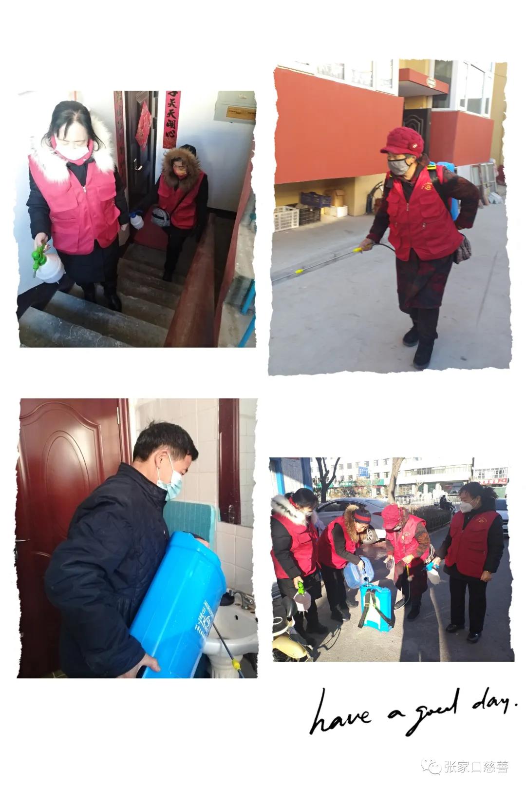 2021年12月24日,阳原县爱国拥军联合会的志愿者分为两组,第一组继续在计生小区上岗先打药消毒,然后为进出人员扫码、测体温、登记等工作;二组继续在弘州医院帮医护人员为前来接种人员扫码、测体温、填表、排队等待接种等工作。