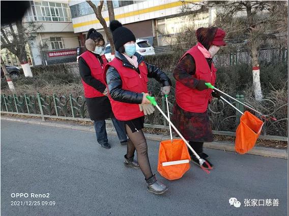 2021年12月25日,阳原县爱国拥军联合会志愿者分成三组,第一组继续在弘州医院帮医护人员为前来接种疫苗的群众扫码、测体温、填表、等待接种等工作;第二组继续在计生小区为进出人员扫码、测体温、登记等工作;第三组志愿者到小区周围、马路边等公共场合捡拾小烟头、垃圾袋、纸片等垃圾。