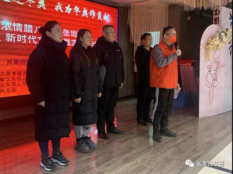 此次活动是由中华爱心粥全国组委会发起,张家口市桥西区文明办、共青团张家口桥西区委主办,张家口桥东区慈善义工联合会雷锋精神志愿者服务队,张家口小城故事餐饮有限公司,张家口金马利食品有限公司,张家口维榀早餐批发部协办。早上五点半志愿者们顶着夜幕,冒着严寒就来到了主会场桥西区小城故事饭店。大家齐动手把饭店厨师煮好的鸡蛋,热好的腊八粥以及面包分份包装,放到运送物资的车辆上面准备给正在执行清扫任务的环卫工送去。同时小城故事的王强总经理为到现场吃早点的环卫工师傅准备好了腊八粥、面包、鸡蛋、特色小菜、热气腾腾的花卷和现炸的油饼。时间来到早上七点,在忙完早上工作的20余名环卫工师傅陆陆续续来到了饭店。
