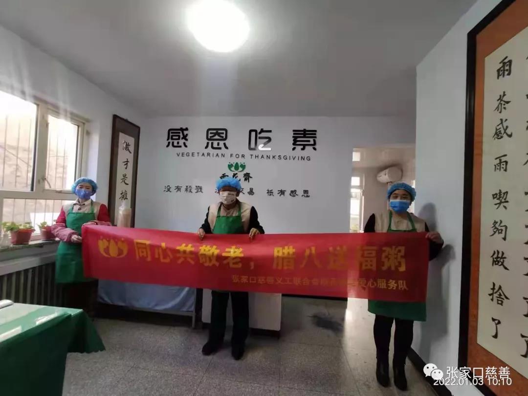 豆泡上,米洗好,果摘净,皮剥开,核去掉,火点燃,水烧上,粥煮上,心系上,情暖上,这是从一月七号开始到今天一月十号整整四天每天早上六点半义工们进行的工作步骤,经过每天七个多小时的忙碌我们供福粥千余份,每天按登记的七十五岁以上老人每人一份饭一份粥发放。看着老人们整齐的排着队,齐声诵读感恩词,义工们都热泪盈眶,这是幸福快乐的眼泪,这是对于所有付出人的赞誉。