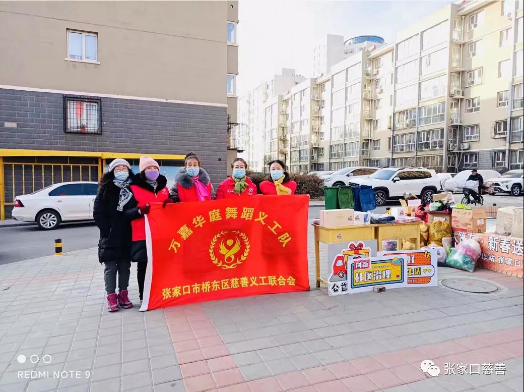 2022年1月9日,万嘉华庭舞蹈义工队和爱宝队为回馈社区爱心人士,倡导安全防范意识,同时搭建社区参与公益的桥梁,河北慈善联合基金会发起“公益大篷车新春送福”活动。联合社区为乡村孤寡老人和困境儿童等弱势群体捐赠优质的闲置物品,桥东区慈善义工联合会作为该活动协办单位,由姚俊丽带队,冀生梅队长带领全队人员积极响应,从1月9日到11日,每日全天在山语华庭小区国旗处设置捐助物资接收点,我们把居民们捐赠的新旧衣服和各种锅具等物品都做了详细登记、清点、分类放置。