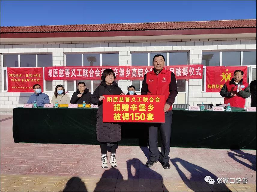 2022年1月17日,正值四九第一天,微微寒风异常刺骨,但志愿者的热情不减,通过县民政局与辛堡、高墙两乡协调,阳原慈善义工联合会捐助被褥仪式在辛堡乡大沟楞村举行,上午10点,阳原县民政局局长张清江、救助科长张春兰,第三方公司代表,阳慈联部分领导和参与捐助活动的团队负责人20多人来到活动现场,受到了辛堡乡党委书记刘秉双、乡长张慧丽等乡村领导及村民的热情欢迎!