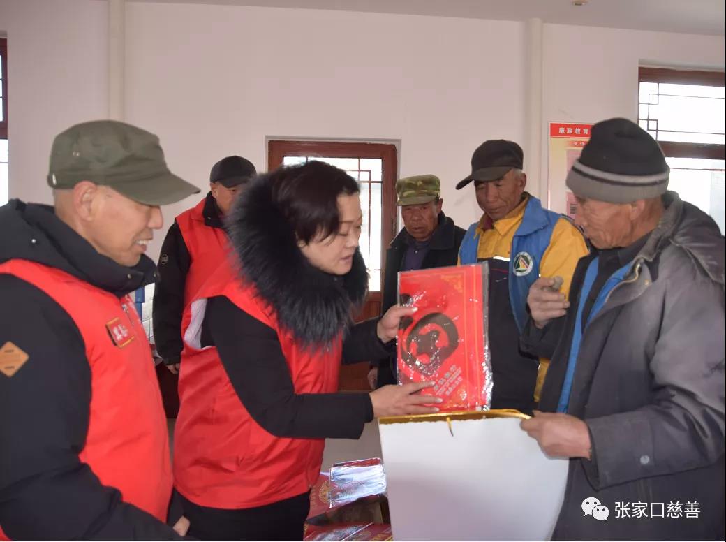 时隔近一年,又是春节来临之际, 1月19日,福德仁爱公益队党支部书记冀惠仁和队长毛艳芳驾驶自家车行驶200公里,和队员许金生、周中华,与张家口市强制隔离戒毒所干部陈锋胜(原高栅子村驻村书记)及所政委和队员一起看望了脱贫致富后的赤城县大海陀乡高栅子村的五保户,并且给五户五保户送去了福德仁爱公益队捐赠的大米、白面、食用油,以及生活用品,还有爱心人士杨海欣捐赠的15盒治疗腰腿痛的中药膏。给村民们送去了春节的问候,带去了承德银行张家口分行捐赠的200幅新年春联,宣化区妇产医院捐赠的200本新年挂历。给村委会送去部分防疫物资。