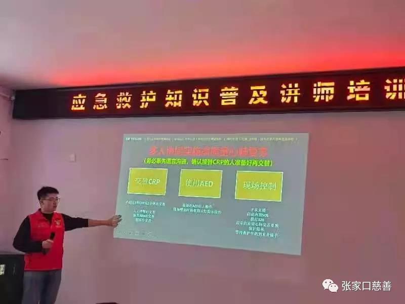 此次培训主要讲解了心肺复苏(CPR)如何操作以及除颤仪(AED)的使用方法。讲师通过图片以及视频的方式让我们明白了急救对于心脏骤停的人多么重要。令我印象最深刻的是:两个不同的人心脏骤停,由于路人两种不同的反应,他们两个人一个走向重生,一个走向死亡。急救只有黄金四分钟,错过了就会给患者造成不可逆的伤害,无数悲剧的重演,唤醒大家参与到学习急救知识当中来,救人也是每个公民力所能及的事情,很快我们就学会了基本急救方法。做为当代大学生志愿者的马妍、任然,我们有义务学习应急救护知识,并将这些知识普及给更多的人,受益更多人,让我们的有效救护可以挽回一条生命。我们更有责任用知识和技能为社会、为国家献出一份力。尽管今天下着茫茫大雪,没能阻挡我们准时来到培训现场。