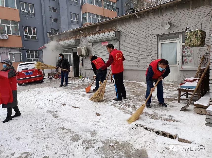 小区里白茫茫一片,门前、院落、路面上都是雪。给小区的居民出行带来了不便。特别是我们这个老旧小区,老年人较多。为了方便小区的居民出行安全,清晨我们长宁街炫美夕阳舞蹈义工队一声令下,穿起红马甲拿起扫雪工具,清扫院内的积雪。我们的行为也带动了院里的一些父老乡亲一起参与。大家分片合作,互相帮助,用了近两个小时的时间,把院里的积雪清理干净。