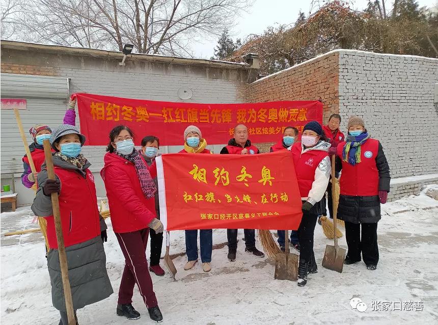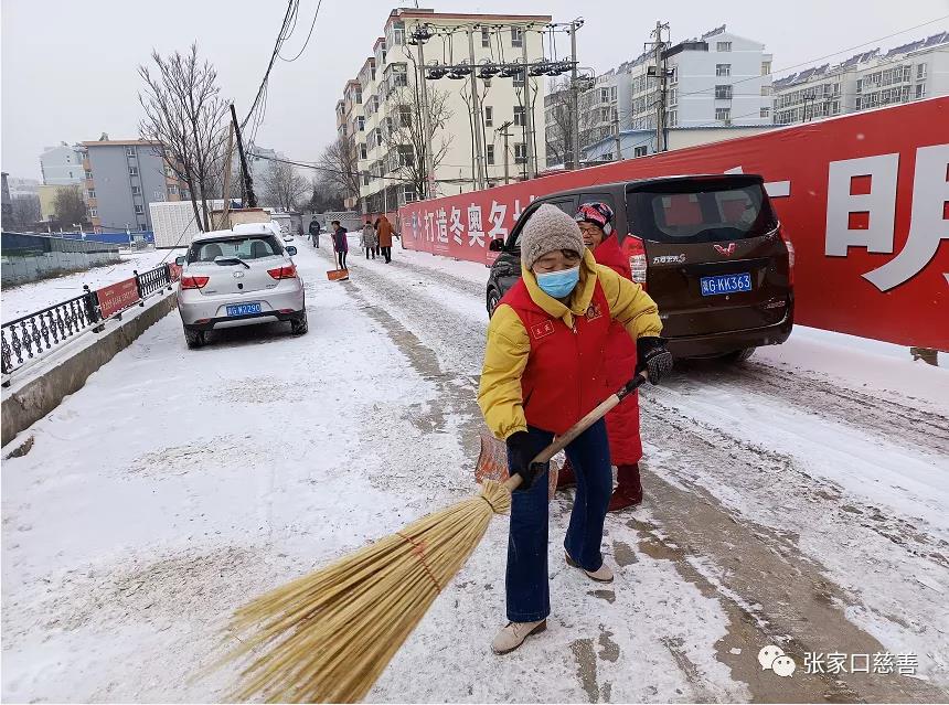 大家又发扬了连续作战精神,把我们义工的奉献精神延深到了通往张家口站的主道路上,协助环卫工人共同清扫马路和站前广场的积雪。我们身着红马甲清理马路上的积雪,传递着爱心。我们的行为也成为雪后一道亮丽风景线。赢得了行人和来往旅客赞赏的眼光。我们把迎冬奥扛红旗的口号落实在了我们长宁街炫美夕阳舞蹈义工队行动中。