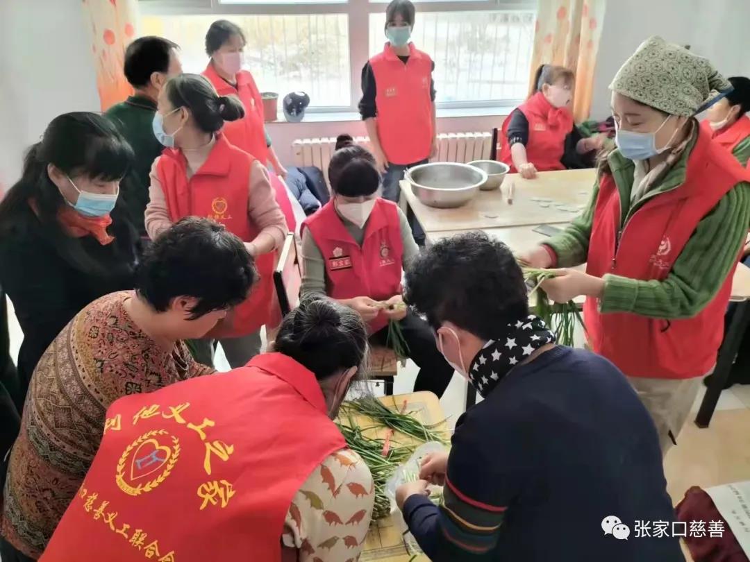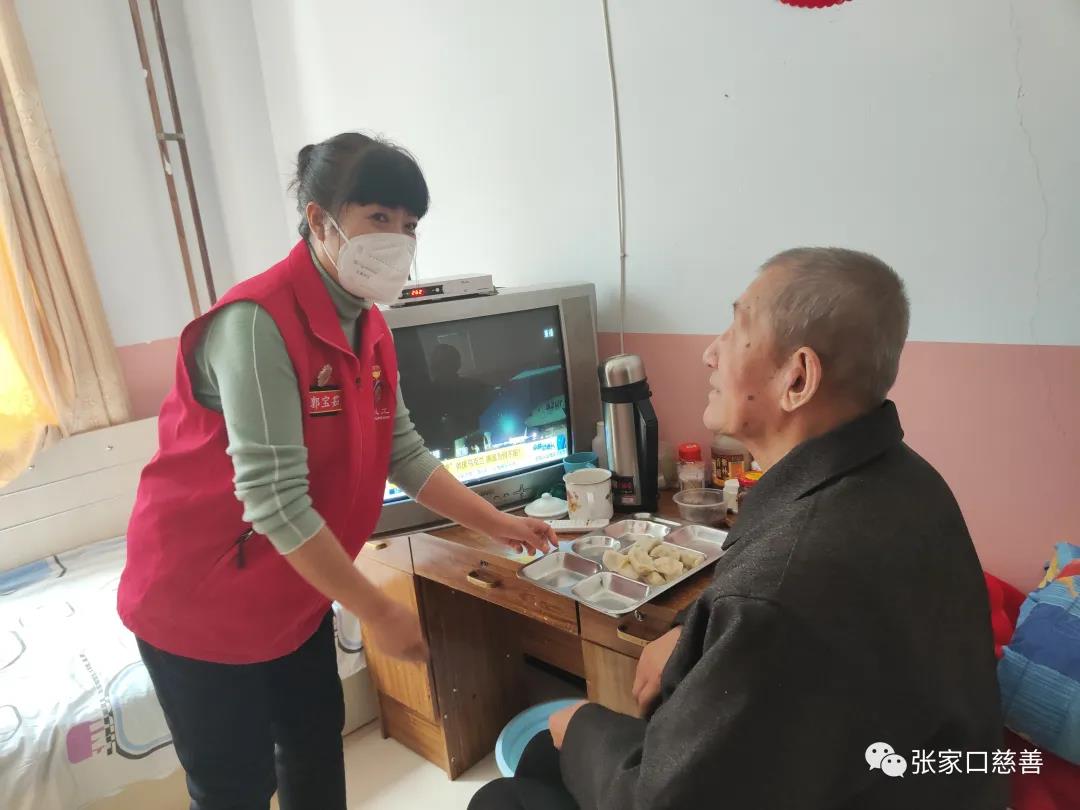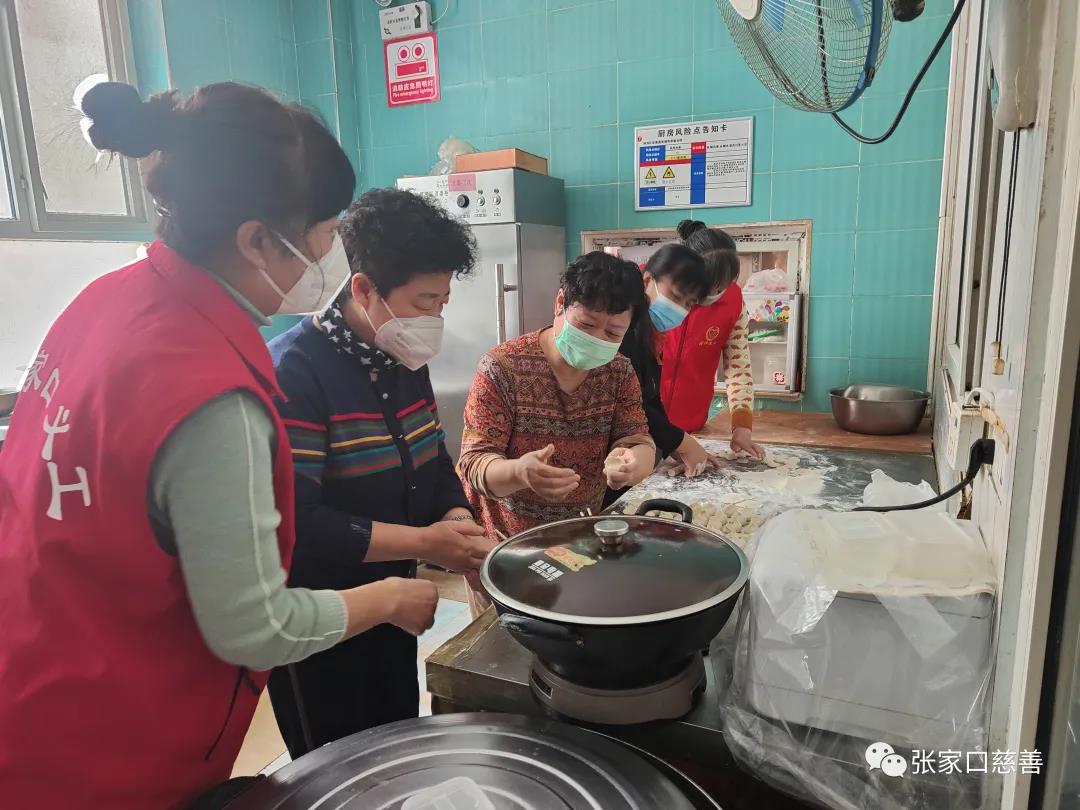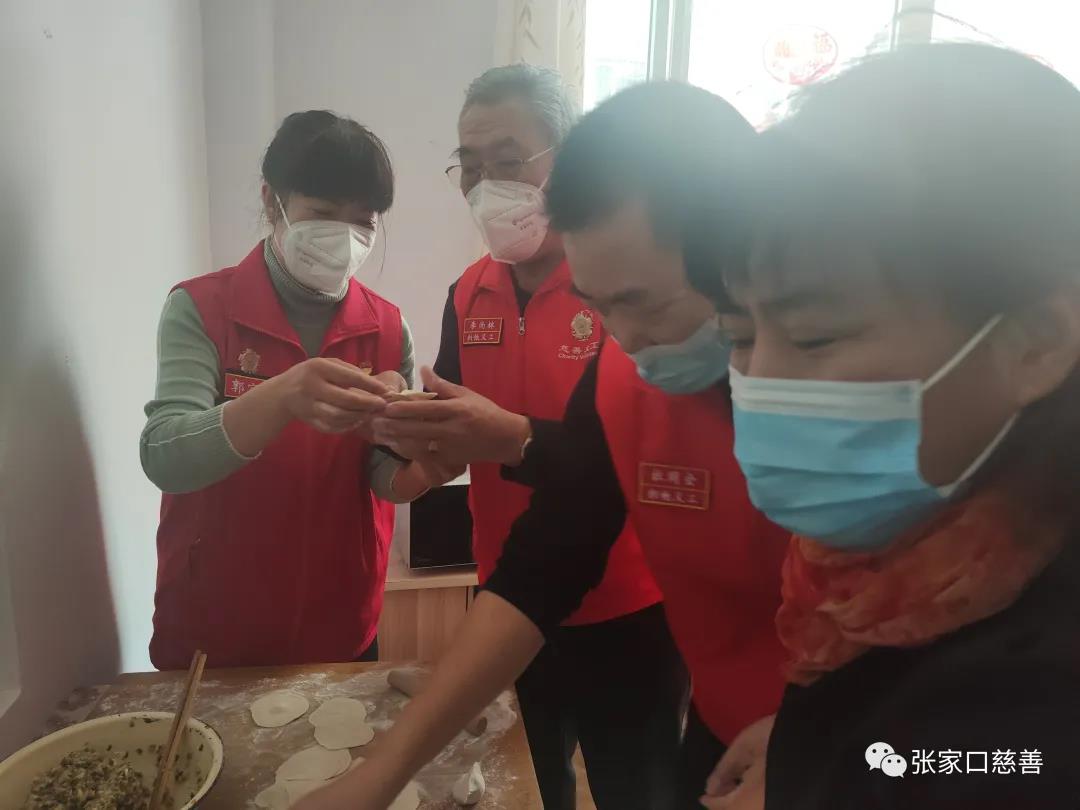 一切准备就绪,大家各自分工,摘菜的、揉面的、拌馅的、擀皮的、好不热闹。配合非常默契,开心至极的时候还一起唱起了歌,《我们的生活充满阳光》,歌声弥漫了整个小屋,气氛热情洋溢。经过2个多小时的辛勤劳作,1000多个造型各异的饺子新鲜出炉。开始下锅煮饺子,不一会热气腾腾香喷喷的饺子出锅了,在工作人员的指导下把饺子送到老人手里,“大爷这是我们刚刚包好的饺子,您尝尝味道怎么样?大娘,您多吃点,锅里还有好多呢”。并送上了新年祝福,他们连声说“真香啊,谢谢你们,你们辛苦了”,看着老人像个孩子一样开心的吃着饺子,每一位志愿者心里都暖暖的。