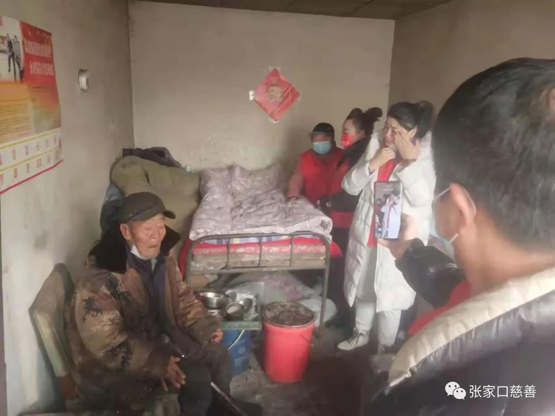 两位老人都已是八十多岁,家徒四壁,说话都很吃力、咬字不清,体弱多病。当志愿者给铺好新的被褥的时候,乔大爷的表情异常激动,试想着站起来,但好几次都没有站起来,点头为大家作揖,弄的大家都有些伤感,副队长孙平还悄悄落泪。另一个赵大爷已经病危了好几次,幸运的是他有一个外甥媳妇在身边照料,但是状况依然不是太好,微弱的右手在向我们比划,可能示意让我们上炕、喝水,已经完全处零交流状,希望他老人能够平安健康,赵大爷的外甥媳妇手里拿着1寸的照片交给了田队长,非常感慨要加入慈善爱心团队。