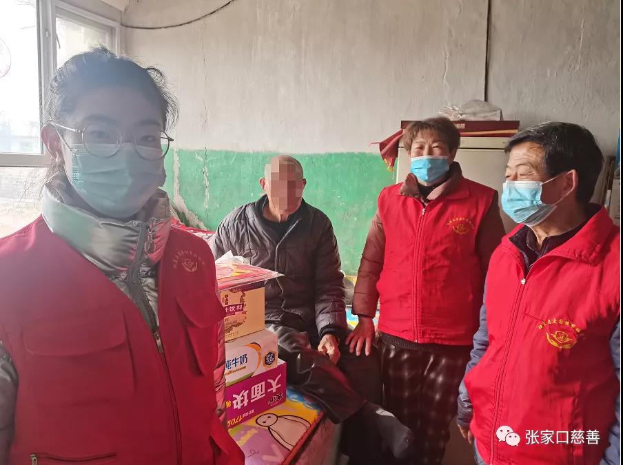 老党员马某今年八十六岁,患有脑梗多年,不能下床,生活困难。我们给他们带去了方便面、饮料、牛奶,他们对我们志愿者表示感谢,心中感到无比的暖。阳原县爱国拥军联合会把最真挚的祝福送给他们,祝他们在新的一年里,万事如意,心想事成,虎年大吉!通讯员:张红霞