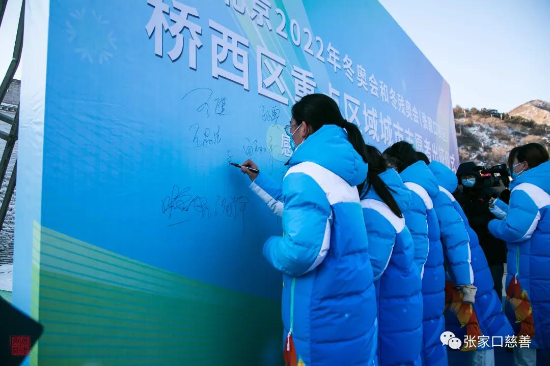 在仪式上,冬奥城市志愿者庄严宣誓:“感恩奋进,决战决胜,冬奥有我,请党放心!”誓言铿锵有力、掷地有声,尽显冬奥城市志愿者热情服务冬奥的信心、决心。《一起向未来》音乐随后响起,城市志愿者纷纷走上舞台,在横幅上庄重地签下自己的名字,表达了自己服务冬奥的热情和决心。