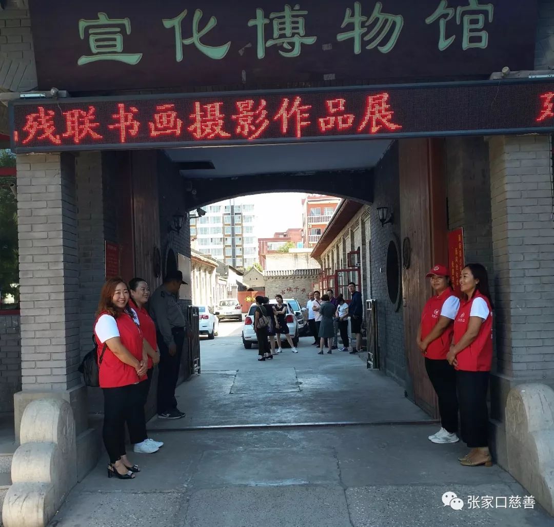 2018年6月28日,延庆·宣化残联庆“七一”书画摄影作品巡回展开幕式在宣化博物馆举行。张家口市慈善义工联合会公E时代爱心救援会众品联创组十人小分队为开幕式提供志愿服务。