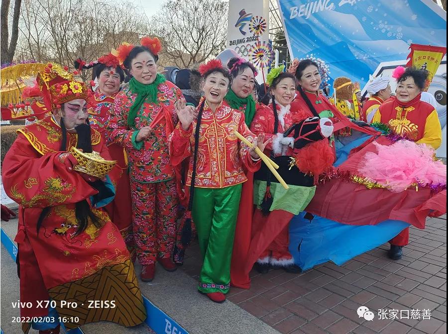 经开区威风锣鼓队全体队员在队长张凤英带领下,放弃与家人的团聚,满怀激情喜迎冬奥,战严寒热情不减。为演出人人踊跃争先,各显其能。威风锣鼓震天响,相约冬奥做贡献。特别是姐妹们穿着亮丽的服装,甩开膀子扭起大秧歌,有骑着小毛驴、有划旱船,有肩挑花蓝,有叼着大烟袋的爷爷奶奶,有装扮唐僧、猪八戒、沙僧、孙悟空等传统民俗文化的特殊人物,她(他)们尽情发挥表演,逗乐了观众,吸引了大家的眼球,受到领导及观众的赞扬。