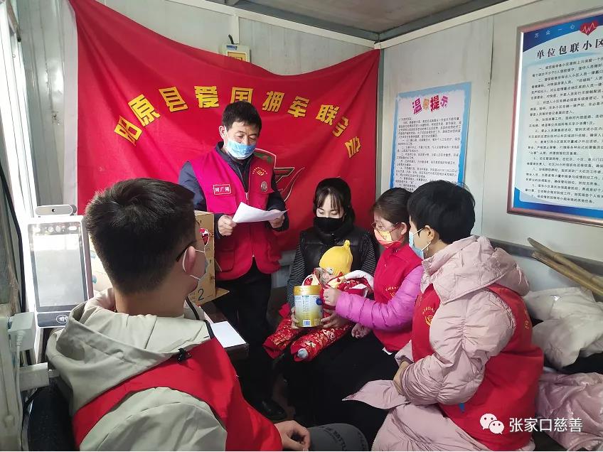 阳原县爱国拥军联合会田广阔会长接到妇联主席康雪莲的通知,积极响应,很快将6—12个月婴幼儿4名上报张家口慈善义工联合会妇联会,在1月19日接到康雪莲主席领取奶粉的通知,安排志愿者到取回奶粉后,在22年1月24日送给三个宝宝后,还有一个宝宝因家中有事不在,得知宝宝张晨辉在2月3日回来,因为今天正是冬奥会正式开始,田会长马上组织志愿者举办了个小活动,通知张晨辉监护人李千红来领奶粉。看到孩子就看到了祖国的未来,意义深远,田广阔会长对孩子的监护人说:希望受助志愿者家庭怀着感恩之心,把党和政府及社会各界的关心化作动力,用勤劳的双手创造美好的明天,关注儿童,就是关注祖国的未来。