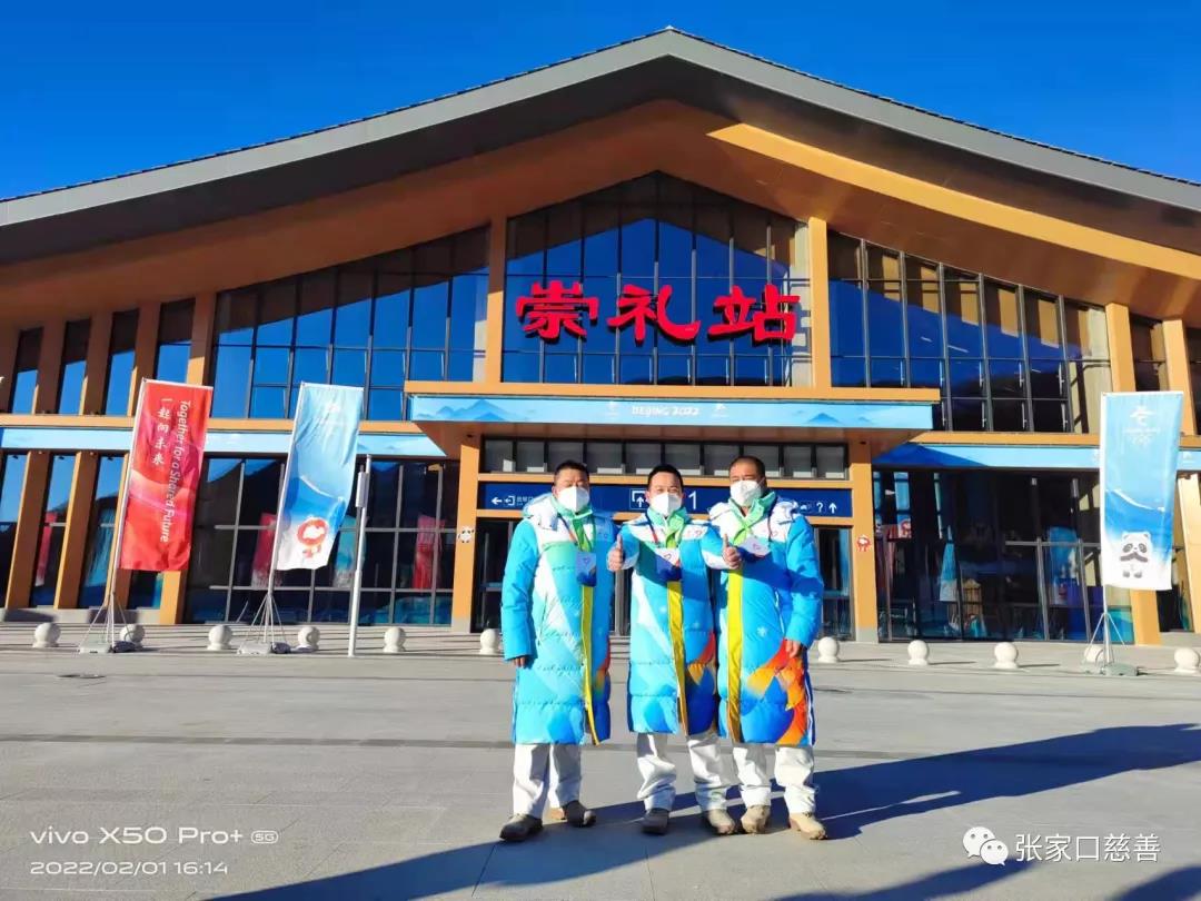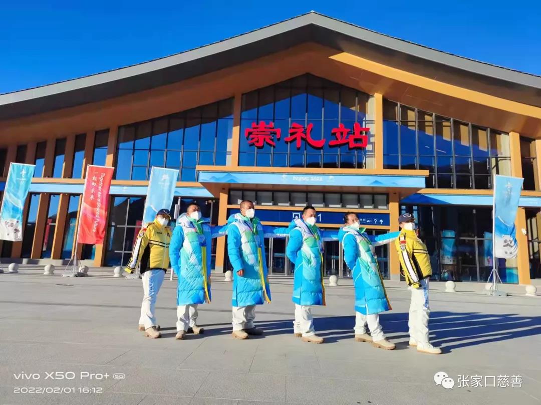 新春佳节之际,张家口市桥东区慈善义工联合会会长李军带队,妇联主席王雪梅,李宝华、姚邺、张玉伟、王晓乐服务冬奥会。张家口赛区崇礼站。志愿者们为大家送去新年祝福,为冬奥健儿加油!