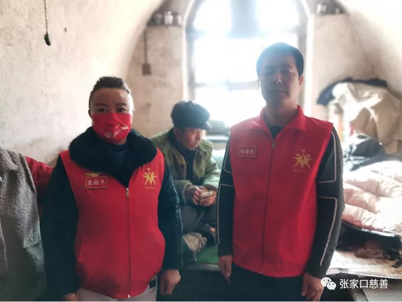 我们走进去了半天,他一直都在床上躺着,非常的令人泪目,可能是感觉到了我们的到来,侧着身子要坐起来,团队骨干张有明赶紧上前扶了起来,秘书长袁桂平拿上被褥,上炕给铺好,并把我们带去的一箱露露、一箱八宝粥、一箱缸头、一箱饼干、两包红枣奶递给老人,袁老还给我们伸岀了大拇指指久久不肯放下,他耳朵听不着,眼睛看不见,况且身体又不好,但他一个高高竖起的拇指却表达了对我们的感激之情。