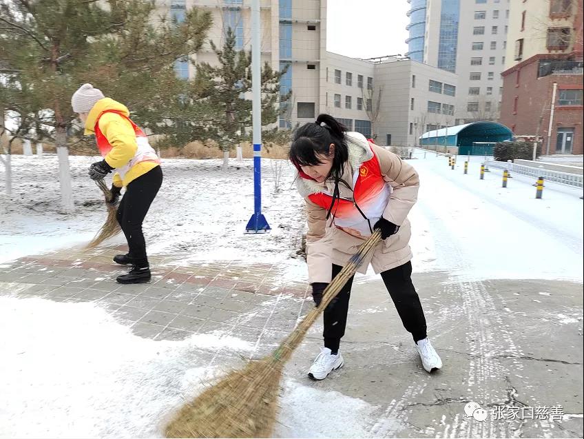 “忽如一夜梨花开”,2022年2月12日,一场厚厚的白雪覆盖了张垣大地,瞬时银装素裹,玉树银花。即使凛冽的寒风也没能阻挡住经开区慈善义工联合会志愿者们高涨的热情。经开区妇联主席段芳携手经开区慈善义工联合会,由副会长张利宏,秘书长杨晓梅,副秘书长王英带队,炫美夕阳义工队以及新华电脑学校志愿服务队的队员们,带着铁揪、扫帚等扫雪工具齐齐上阵,团结协作,头顶寒风,积极地投入到扫雪除冰的行动中。寒风虽然刺骨,但大家脸上却洋溢着灿烂的笑容。经过大家的共同奋战,扫雪活动圆满结束。