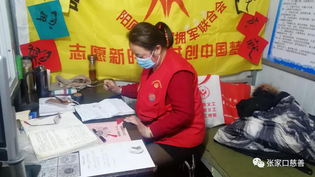 为落实全县整体防疫措施,阳原爱国拥军联合会从去年下半年起进入计生小区开展疫情防控执勤活动。围绕疫情防控做好志愿服务工作,小区的值班室每天都有志愿者忙碌的身影,他们为进出人员扫码、测体温、登记等,虽然这些工作看似微不足道,但能用心去做好谈何容易,特别是在春节期间,我们对计生小区和退役军人事务局的楼道、楼梯口、扶手等进行全方位、无死角地消毒。年逾六旬的田广阔会长身背五十多斤的消毒液,脚步沉重地行走在小区、楼道,凭着对志愿服务的一腔热血,他从不叫苦喊累,将志愿者为人民服务的精神贯彻始终。志愿者张红霞、祁英、王素珍、张晓宇、冯海燕、马玉珍、辛秀琴、薛桂芳等舍小家为大家,牺牲自己的春节休息时间,始终坚守在疫情防控第一线,以执勤岗位为荣。面对亲朋好友的不理解、不支持,他们并未动摇志愿服务的决心,而是耐心去解释,用行动去证明我们所做的一切都是为了更多的人能幸福团圆,舍小家之我奉献大家之爱。我们志愿者披星戴月,天不亮就来到值班室,午餐常以方便面凑合,到晚上回家已是万家灯火了,日月星辰见证了我们志愿服务的无私付出,无论是寒风凛冽,还是炎炎烈日,我们为小区的疫情防控做出我们应有的贡献。