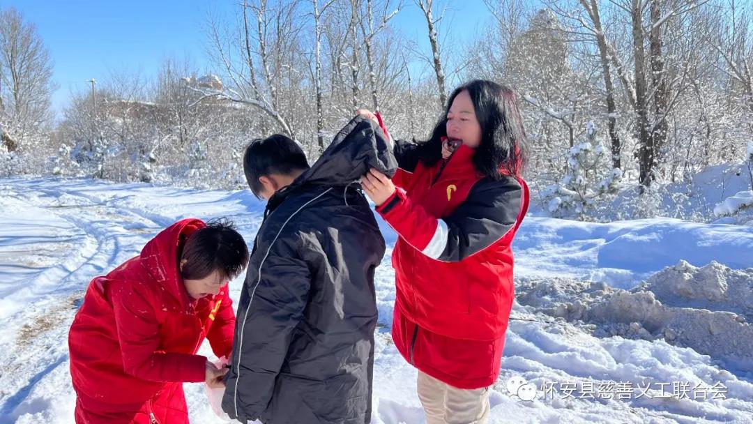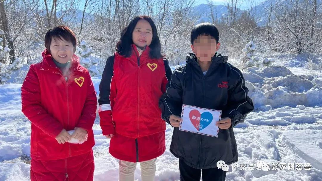 怀安县慈善义工联合会志愿者冒雪为山区孩子送去温暖
