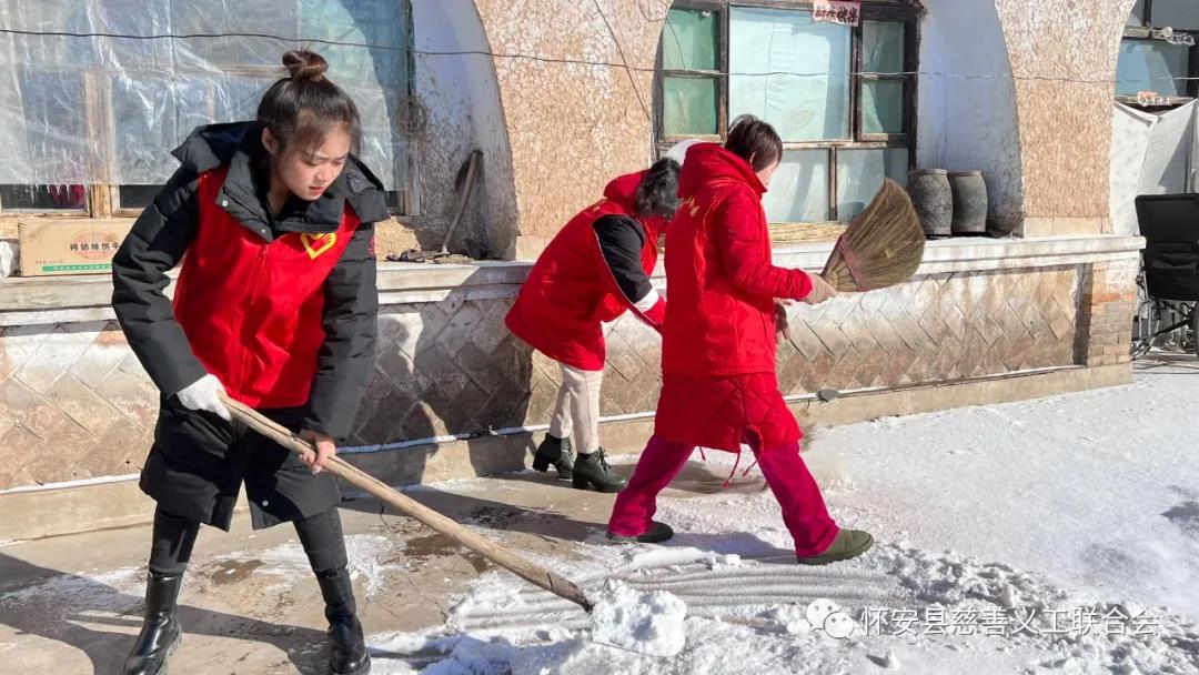 寒冷的天气和凛冽的寒风抵挡不住大家伙儿的扫雪热情,她们发扬“艰苦不怕苦,困难不怕难”的奋斗精神,来到老人家里帮助老人清扫积雪。经过半个小时的努力,行动不便孤寡老人的门前屋前积雪被清理干净,消除了安全隐患。