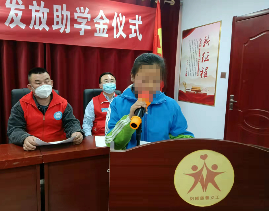 刘会长指出,进入2022年,阳原慈善义工联已经做了两件大事,一是服务冬奥,2月3日,阳原慈善义工联近二百名志愿者参加了北京冬奥会火炬传递张家口赛区泥河湾国家遗址公园起跑仪式主会场工作,大家服从命令,听从指挥,顶严寒,忍饥饿,专心排练,表现一流,把中国人民团结一心、众志成城、自强不息、昂扬向上的精神风貌展现在世界人民面前,受得了省市县各级领导的高度评价,二是服务全国“两会”和“冬残奥”会,阳慈联109人、228人次参加了执勤工作,传统文化队在执勤期间,将阳原县汽车站候车室、卫生间打扫的干干净净,受得了广泛好评。随后,与会领导和爱心志愿者为受助学生发放了助学金和《亲缘日记》,刘会长为李某慧发放了代理妈妈爱心物品。张某露代表受助学生做表态发言,表示一定要树立远大理想,明确学习目标,发奋上进,努力学习,把自己锤炼成为品学兼优的有用人才,报效祖国,回馈社会。张某玮的父亲代表受助学生家长作了表态发言,他说,我们怀着一颗感恩的心,感谢爱心人士,感谢阳原慈善义工联合会,一定要用实际行动去证明一切。会后,志愿者们与受助学生及家长进行了深入交流!