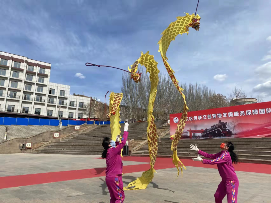 2022年4月7日下午3点30分,张家口市桥东区龙泉广场上彩旗飘舞、锣鼓喧天,由桥东区委区政府组织的桥东区包联文创营地冬奥服务保障团队胜利凯旋欢迎仪式正式开始,北师乐缘义工之家“龙之队”20名队员应邀参加了这次欢迎仪式,队员们满怀激情、用她们手中的彩龙舞出了东方巨龙的神韵,为凯旋归来的冬奥服务保障团队的英雄们献上了一场精彩的演出,她们用自己这种特有的方式欢迎英雄凯旋,欢迎英雄回家,表达了她们对冬奥服务保障团队英雄们的敬佩!