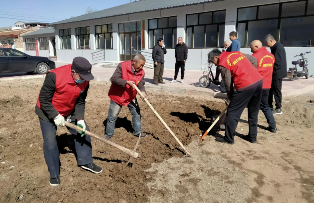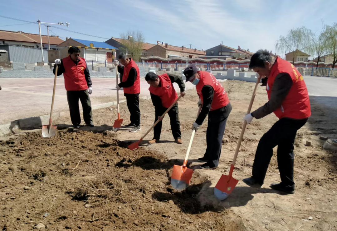 从4月14日开始,每天上午八点多点,传统文化队队长马占海、秘书长梁成山就把提前预备的五把铁锹和十副手套装上车。来到了西城镇南街社区,紧接着党支部书记贾宪同志带着共产党员张林、杨直云和志愿者王桂林、郭荣、冯占英到达,入党积极分子分子毛小青和梁溪也来了。大家看完场地,决定首先清理地上的砖头瓦砾,看到有好点的砖头和砂子,贾书记提议放在房子后面的地方,等待有机会再利用。贾书记带领大家先把地里的垃圾清理,放到垃圾桶里,王桂林力气大来推车,其他同志开始装车清理等。推到垃圾桶边上的杂土由张林负责装进箱内,地里的垃圾和砂石清理完成后,大家紧接着开始用铁锹翻地,这片地由于多年没有耕种,加上最近装修房子,大车小车长时间停放,致使土地非常硬,但老党员们有办法,铁锹翻不动就用镐头刨,芦苇草的根深就使劲拽出来,大家干的热火朝天、热情高涨,也引来了周围群众围观,大家纷纷表示,志愿者的精神好,应大力提倡。经过三天的不懈努力,终于完成既定任务,经过测量这块有二分地,为日后美化环境奠定了基础。