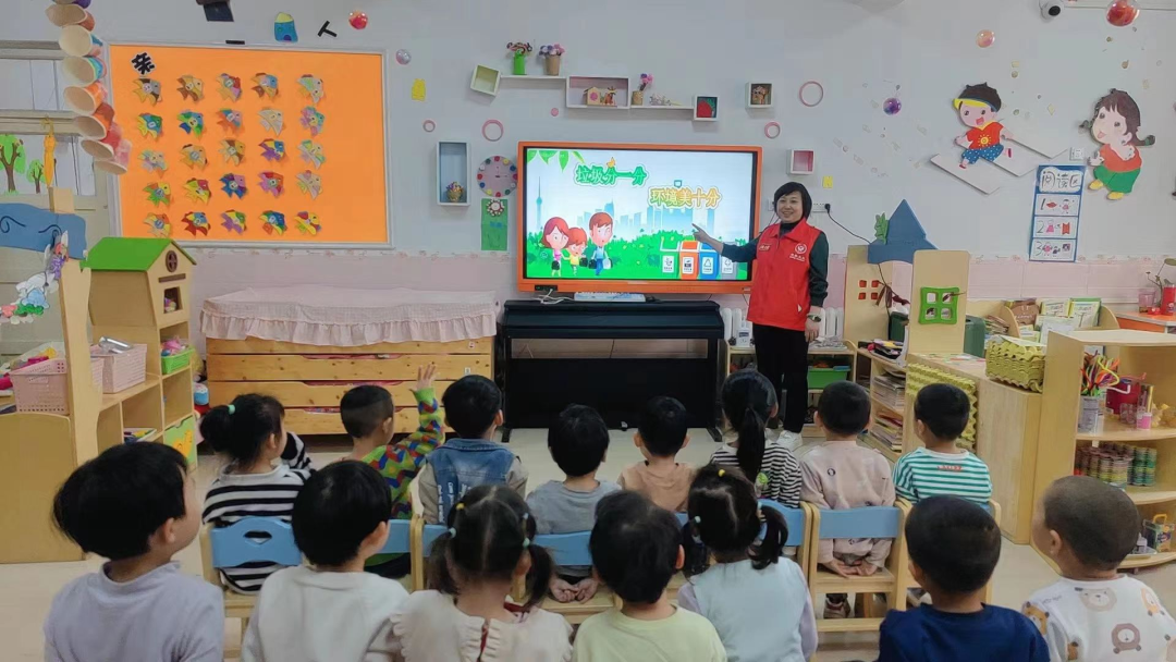 活动分为六项议程。第一、首先由王园长向全体师生发出倡议:“地球,是我们唯一的家园。保护地球,现在已经不能是单纯的呼吁,而是到了让我们拿出实际行动的时刻。珍惜地球资源,与环境和谐发展,让我们停止对地球母亲的伤害,拯救地球就是拯救未来”。动员全体师生从身边的小事做起,从自己做起,用实际行动带动各自社区,起到公众参与的良好氛围,大家一起共同努力;第二、张家口市自然资源与规划局、张家口市生态环境局、张垣博爱社会服务中心为幼儿园捐赠消毒泡腾片、宣传资料、活动手册、环保图书等。第三、环保专业人员为孩子们精彩授课,按照年龄提问、图片展示、视频等形式向小朋友们介绍了“世界地球日”的来历和意义。结合我们身边的疫情热点,做好“垃圾分类”让孩子们更加深刻地体会到了:在大自然面前,我们是渺小的,尊重自然、爱护环境,是我们每一个人的责任;第四、“百米画卷绘地球”小朋友们喜欢用自己的表达方式去关注地球健康问题,他们迫不及待得在涂鸦墙上描绘“我心中的地球妈妈是什么样呢?怎么才能保护她呢?”瞧!孩子们各显身手,用稚嫩的小手绘出对地球的热爱。环保工作人员被小朋友们的热情所感染,他们也积极地参与进来,仿佛瞬间回到了童年,大手小手一起勾画出一幅幅栩栩如生的画面,美丽的房子、漂亮的小花,绿色的树林......展现出对地球、环境、自然、家园等美好事物的热爱;第五、弯腰动手,我们在行动。小朋友们可以为地球妈妈做点什么呢?现场小朋友们各个变身“环保小卫士”,弯腰动手,打扫活动室、区角、玩具,用力所能及的小事守护地球妈妈的一片净土。爱护植物,起动手,播撒种子,施肥浇水,“这是我的小植物,志愿者们也情不自禁地参与其中,我要和它一起长大”“阿姨,你猜猜我的花盆里还种了什么?”小朋友在丰富了班级自然角和种植区的同时,也为地球妈妈增添一抹新绿,用自己的实际行动表达对地球的尊重,对自然的热爱;第六、最后孩子们在老师的带领下,向市民发放宣传资料,共同参与,做宣传小卫士。践行一个孩子,带动一个家庭,影响整个社会。