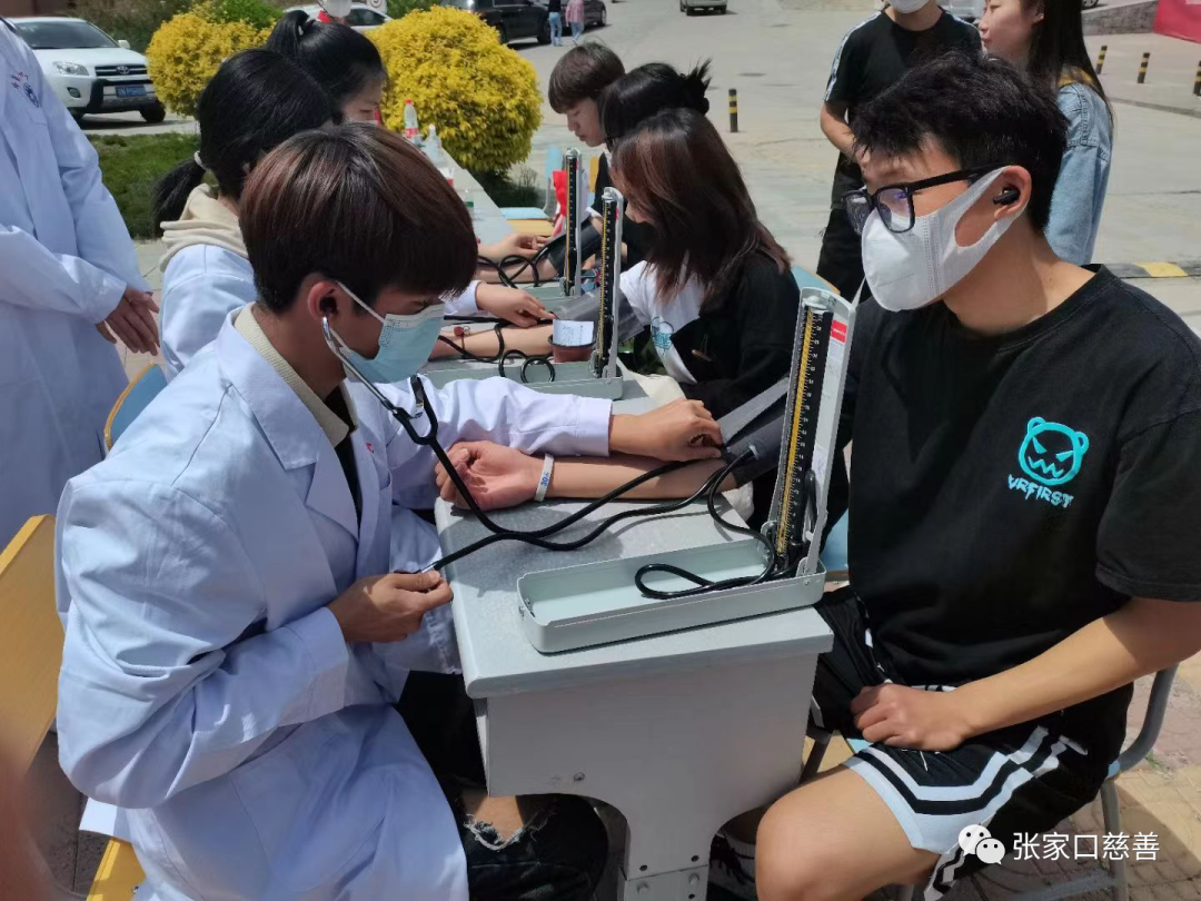 志愿者为同学和居民测量血压、血型