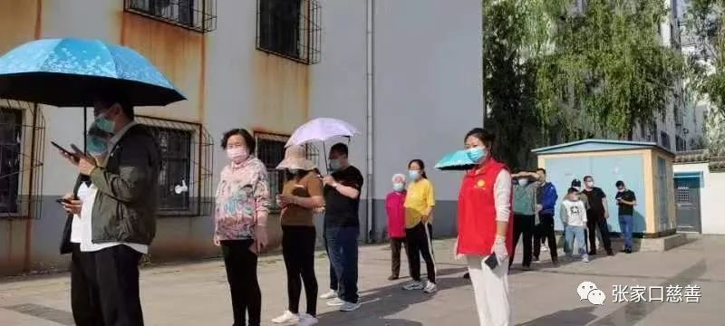 根据社区安排,宣化慈善义工联合会的志愿者分组合作,一组在核酸检测现场,配合医护人员工作,对参加核酸检测的居民进行扫码验证,有序开展核酸检测工作。