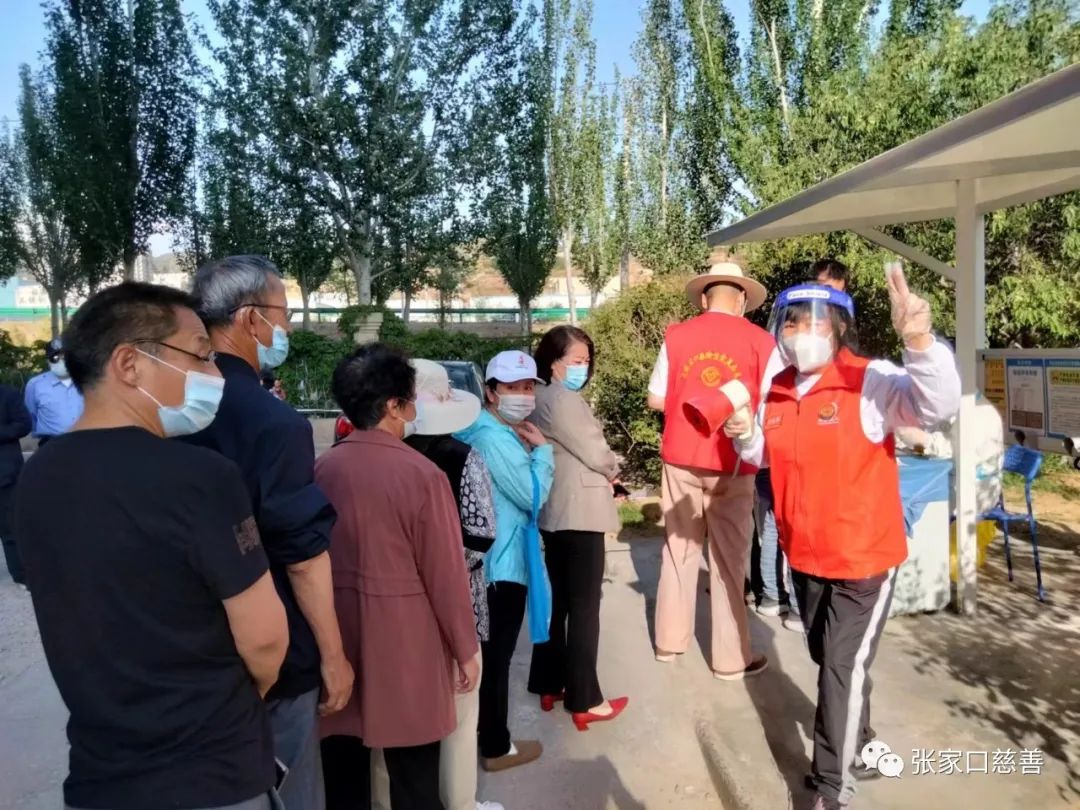 在东方苑小区社区采集点服务的福德仁爱公益队八十多岁的老党员李书庭,认真负责,严格按照防控要求协助维持秩序。福德仁爱公益队队员、司法部门在职干部陈锋胜,与社区居民宣传疫情防控的重要性与核酸检测的必要性。退役老兵赵凤英站在炎热的阳光下,引导居民按须进行检测。