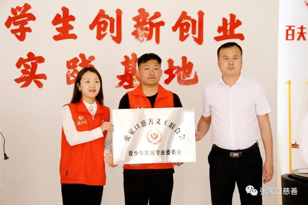 河北建筑工程学院学工处副处长李海波和市慈善义工联合会秘书长臧沙沙共同为青少年发展专委会授牌