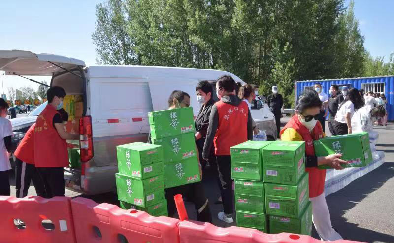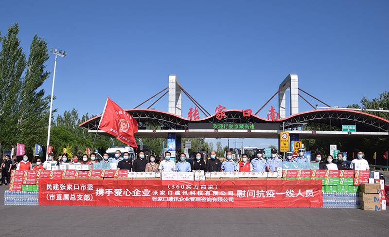 我会爱心企业为大家送去了自加热米饭 15件,羊贝滋液态奶 30件,桶装方便面 30箱,绿茶饮料 30件,矿泉水 60件,羊奶饼干 2箱,老来寿富氢水100袋,中药防疫香囊100个,同时也送去了大家对工作在防控一线的防疫人员及公安检查站的工作人员的节日问候。民建市委委员 (市直总支部)副主委、慈善义工联合会助残专委会会长 孟富,民建会员、助残专委会副会长、爱心企业家 孙晓飞,民建市委监委委员 助残专委会副会长 高雅慧,助残专委会秘书长福德仁爱公益队长 毛艳芳等人员,与民建张家口市委主委、大海陀国家级自然保护区管理处主任、赤城县副县长姚大军,经开区党工委副书记左克平,民建市委驻会副主委 刘淑芬 ,市统战部科长 郑玉红,民建市直总支部主委、市统计局处长 赵暑升,经开区防疫办副主任郭士伟,经开区公安分局巡警大队大队长郭伟,森林公安分局政委梁山等领导共同参与了本次慰问一线工作者活动。