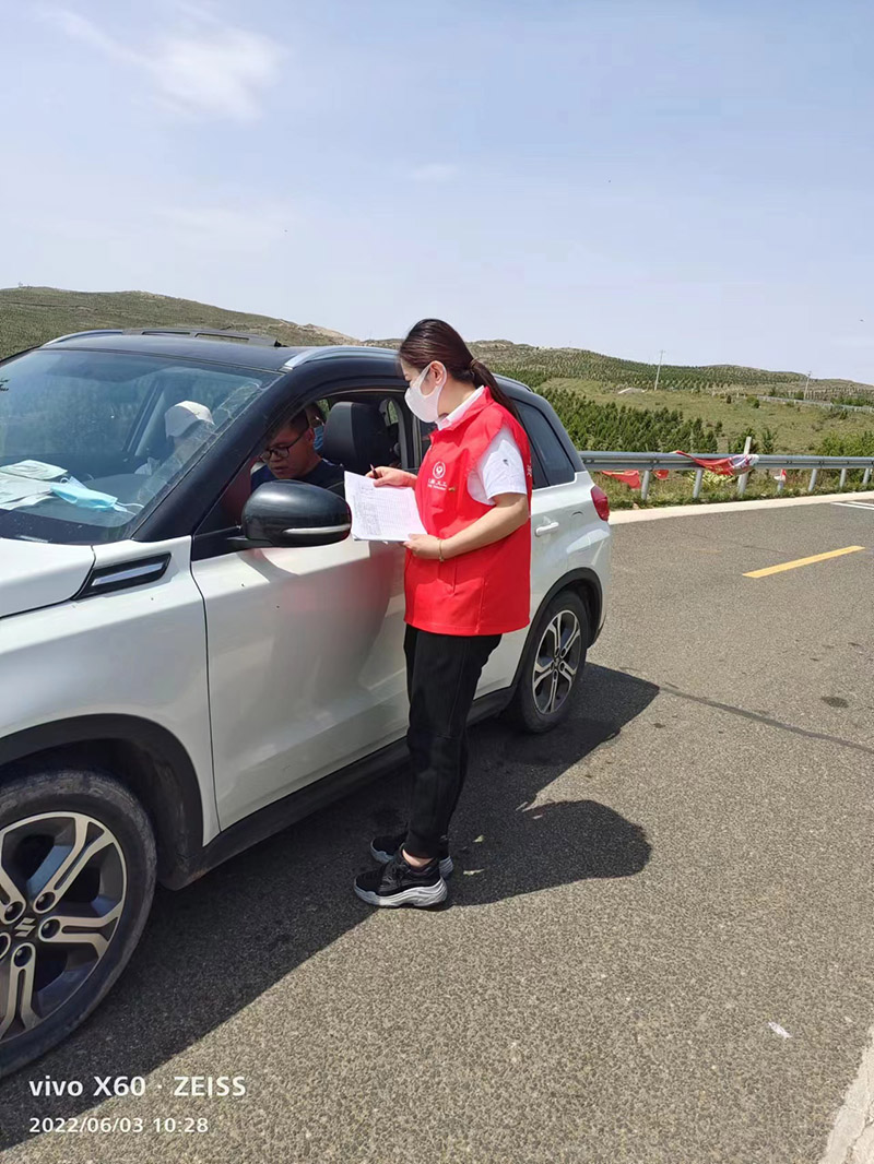 青山志愿服务队队长白雪峰带领志愿者参与疫情防控排查工作,志愿者们早上8点抵达驻村地点二道背村口,志愿者们身穿鲜艳红色马甲,下车后快速投入检查点协助检查,在主要路口协助疫情检查站的工作人员,关卡检查中,严格落实防疫政策,对非绿码的和疫情风险区域的人员一律实行劝返,对进入二道背村的人员及车辆都要严格排查与登记,逐项落实防疫政策,并实名登记,对来往,严把路口关,疫情防控的宣传,为社会,为乡村当好志愿者,宣传疫情防控的重要性;严格管控排查,不留任何死角隐患。