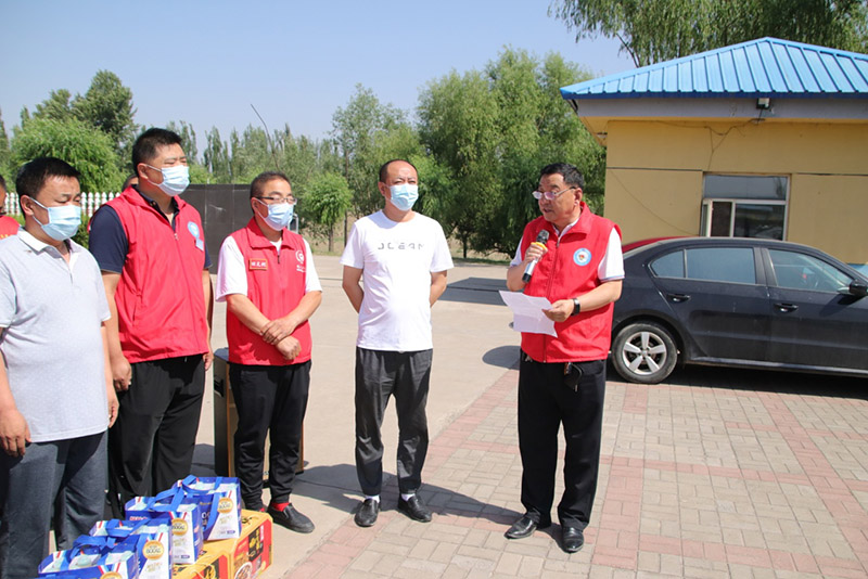 本次爱心活动由阳原慈善义工联合会会长刘立东主持,他说,节约用水、保护环境是国家实施可持续发展战略的重要措施。是提升人民生活水平的重要内容。今天,我们阳原慈善义工联合会、阳原慈善应急救援队的爱心志愿者怀着十分激动的心情,来慰问大家,我代表爱心团队志愿者向辛勤工作在污水处理厂的各位朋友致以亲切的慰问和美好的祝愿!今天的慰问,得到了爱心企业家田文利以及阳慈联爱心朋友的赞助,在此我们表示一并感谢。