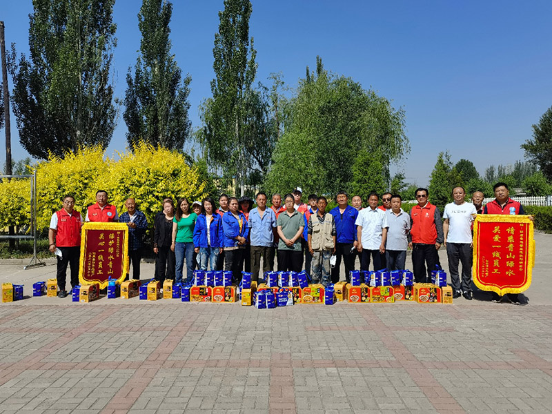 王旭红代表爱心团队向工人师傅致慰问词,污水处理是一项功在当代,利在千秋的崇高工作,工人师傅们没有什么豪言壮语,也没有可歌可泣的动人事迹,但用长久的默默付出和平凡的坚守为阳原的蓝天碧水保驾护航,你们是环保理念的传播者,你们不畏高温、忠于职守、辛勤工作,为大家营造舒适宜居的生活环境,用对本职工作的热爱和责任,谱写了一曲最美的劳动者赞歌,为净化我县的生态环境做出了积极奉献,是净化环境的功臣。让我们聚众人之心,举你我之力,共同创造文明和谐大家庭。