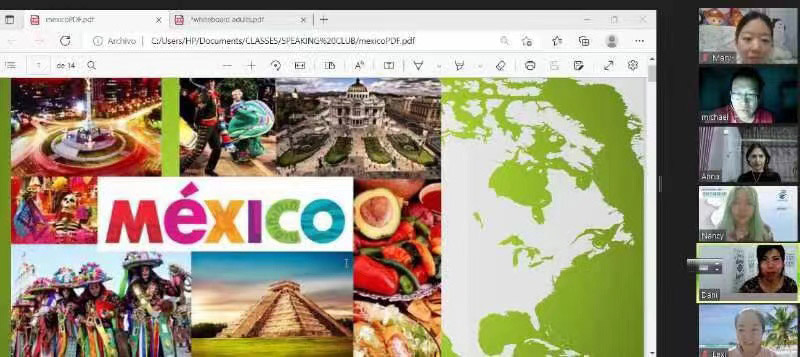 2022年6月10日晚,外语角志愿服务队与墨西哥English Speaking Club组织开展了线上交流活动。在多语言专委会副会长、外语角队长段宏毅的热情主持下,活动于晚上9:30拉开帷幕,活动上,来自墨西哥的老师Dani和她的学生Ivette热情细致地介绍了墨西哥人们的生活日常、民族历史、特色舞蹈、美味佳酿、风景名胜等独特而有趣的文化。多语言专委会秘书长冀鲁豫通过PPT,展示了张家口冬奥场馆、地方文化、风俗习惯,同时还分享了自己作为一名冬奥志愿者,在参与冬奥会期间的感悟与收获。