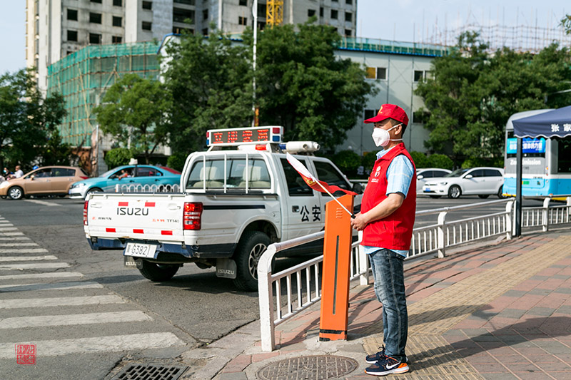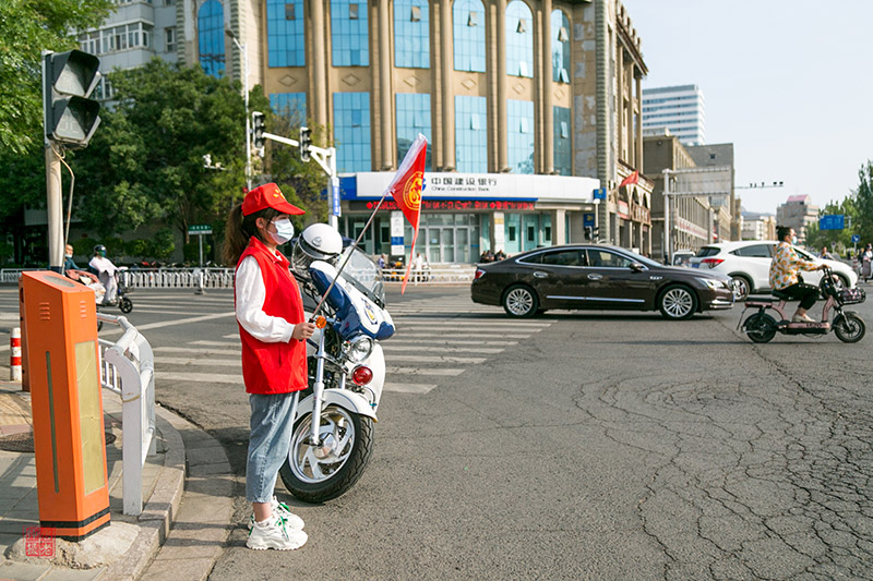 早高峰时段行人和车辆络绎不绝,车流量大,易发生交通事故,在志愿者们的劝导和指挥下,行人和车辆来往井然有序、有条不紊。这离不开志愿者们高度的责任感和耐心的规劝,看到有人要闯红灯,志愿者主动提醒道:“请您再等一会儿,绿灯亮了您再走。”遇到腿脚不便的老人也赶忙搀扶,安全过马路。我们的善举也得到了市民的认可与称赞。