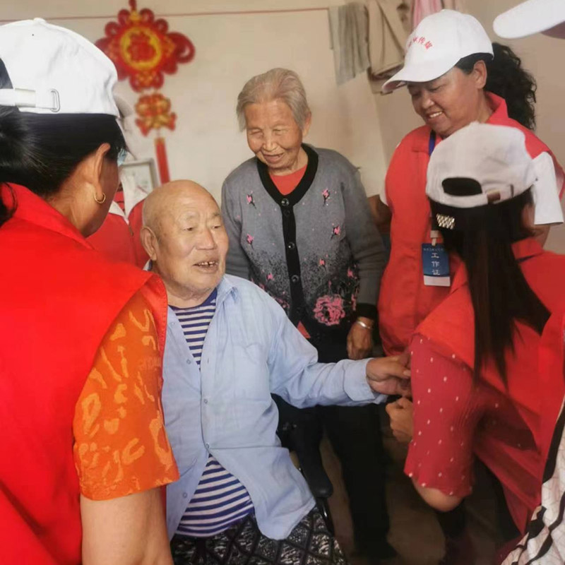 4月16日,阳原花轿文化传媒队东井集工作站,站长徐小芳、秘书长张志花带领志愿者一行10人来到东井集镇漫流堡村慰问老党员王占东老人。