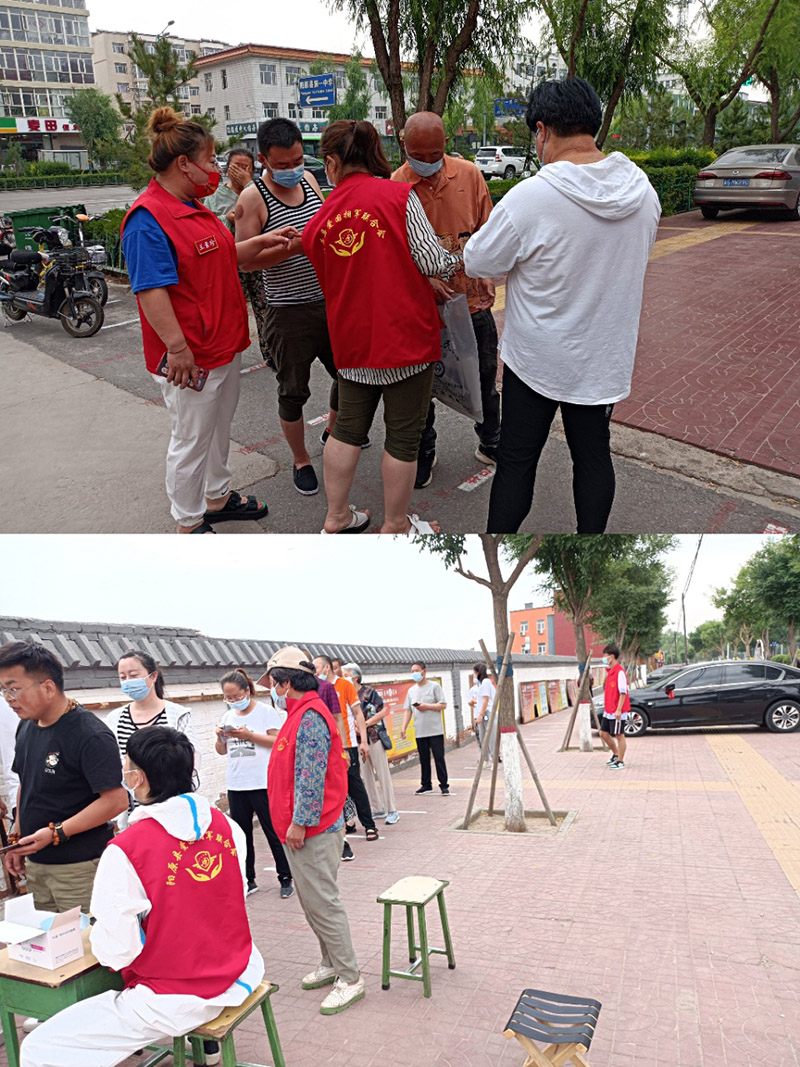 6月21日,阳原县爱国拥军联合会会长田广阔组织15名志愿者分别在绿源电动车商行、华佗药房、计生小区、气象站门口四个核酸采集点开展工作维持秩序,配合医护人员为居民扫码完善信息,有序的进行核酸检测。田会长拿着喇叭到小区不停地喊着让没有做核酸的居民赶快下来做核酸,为行动不便的人员上门检测,做到不落一户、不漏一人、应检尽检。志愿者们在35°度炎热的气候下,不叫苦不叫累,弘扬志愿精神,为全员核酸检测做出积极的贡献!