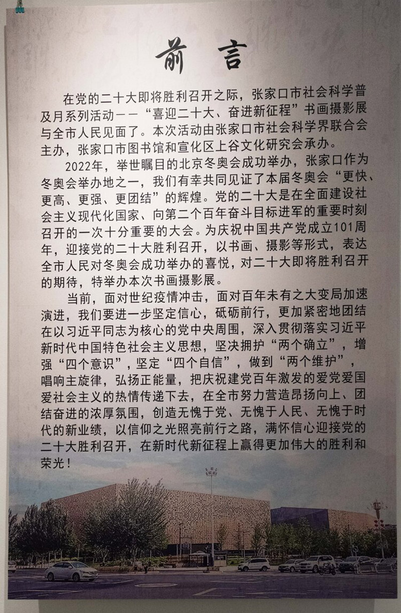 众多优秀作品,以独特的艺术语言,歌颂党的百年历程和伟大壮举,表达出对伟大中国共产党的深深祝福,同时也为张家口强抓发展机遇,交好“两份答卷”,奋力开启现代化新征程,凝聚更大更强的前进力量。