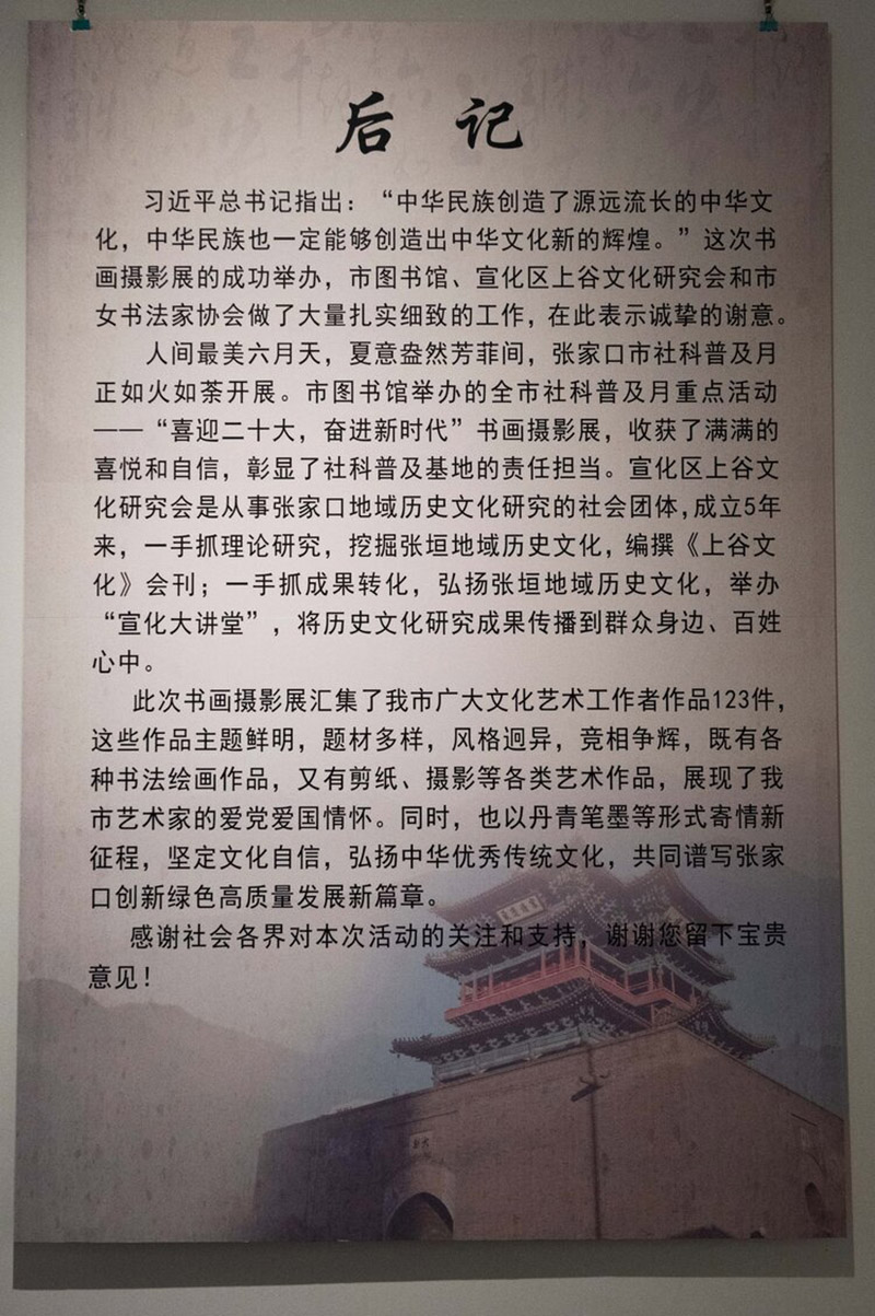 本次展览是由张家口市社科联主办,张家口市图书馆和宣化上谷文化研究会协办的。