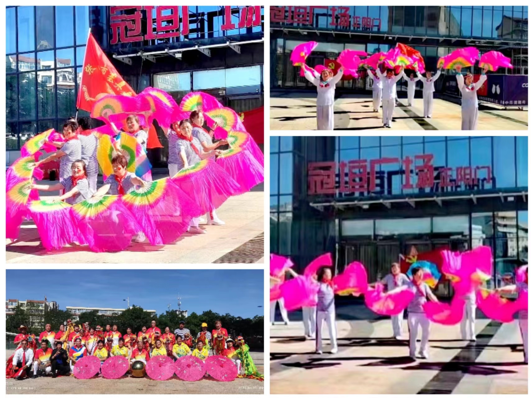 沐浴着晨曦的阳光,站在鲜红的党旗下,我们齐声合唱《歌唱祖国》嘹亮的歌声响彻广场上空,祝福祖国繁荣昌盛,让我们用实际行动证明请党放心,强国有我,我们此刻的心情是那样的激动,接着扇子翩翩起舞《没有共产党就没有新中国》,送上对中国共产党建党101周年的深深祝福,表达他们对党和祖国的无限深情。随后是自编自导的三句半《战疫情》;紧接着是空竹在半空中飞舞;非洲鼓的老师们一曲《旗开得胜》更加验证了党的英明伟大。我们精彩的表演吸引了周围广大群众,顿足观赏,观赏之余纷纷用手中的手机拍照,记录下这一美好时刻。此刻,中华龙舞起来,在天空飞舞翱翔,寓意中华民族日新月异,蒸蒸日上;我们的《母亲是中华》欢庆”七一”,提升了现场欢乐氛围;最后欢乐腰鼓,击出了团结友情,促进了友谊、舞出了激情,提升了团队的凝聚力,敲响了时代的最强音。