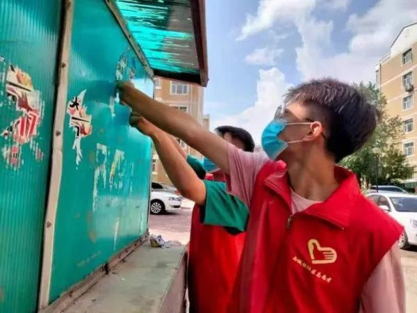 6月28日上午,阳原传统文化队在西城镇西街社区的领导下,和大学生志愿者们一起在丽景生活城开展了清理小广告的志愿服务活动。